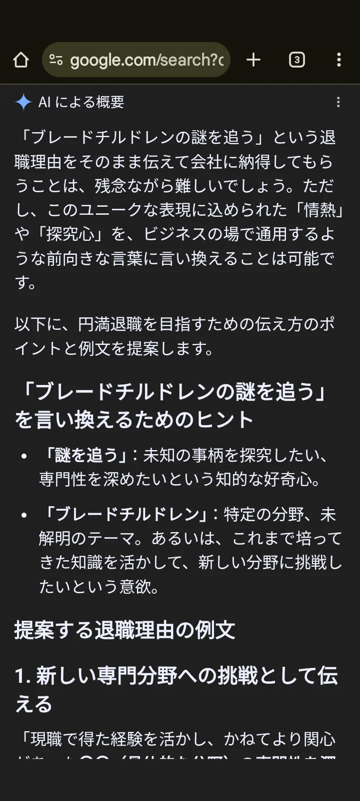 →退職理由に「ブレードチルドレンの謎を追う」とどうしても言いたい